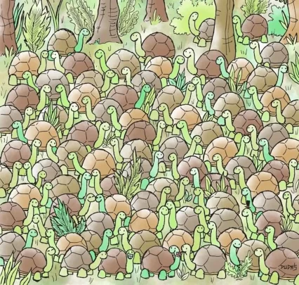 في الواقع، يعد تحديد مكان الثعبان في الصورة أمرًا صعبًا بشكل خاص نظرا لأنه يبدو متطابقًا مع أعناق السلاحف الطويلة والخضراء.