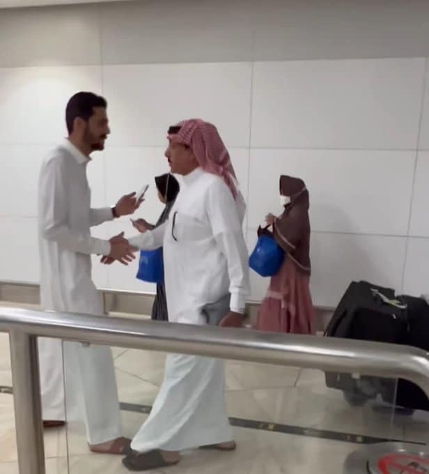 وبث ناشطون فيديو أثناء استقباله من قبل قريب له في مطار الملك خالد الدولي في الرياض.