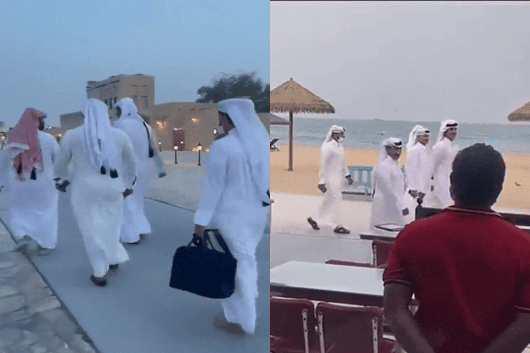 وفوجئ المواطنون والمقيمون خلال تواجدهم على شاطىء “الوكرة” بالأمير تميم بن حمد، وهو يسير مع عدد من مرافقيه بالزي الخليجي.