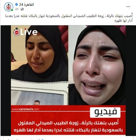 كما كشفت زوجة الطبيب الصيدلي أن السيدة السعودية، قتلت زوجها غدرا بعدما أدار لها ظهره.