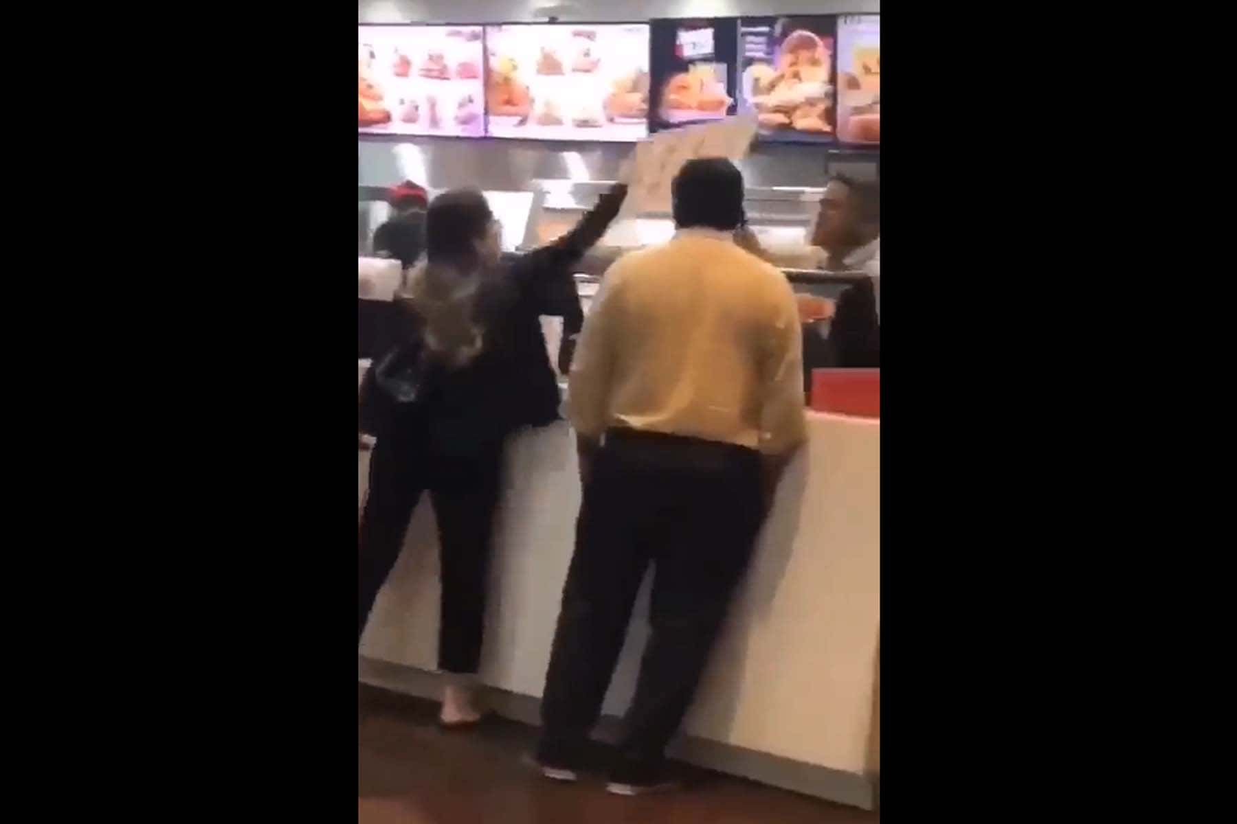 ووفقا للفيديو المتداول الذي رصدته “وطن”، فقد وثق قيام امرأة من الجنسية الكويتية بالتلفظ بألفاظ بذيئة على موظف في أحد أفرع مطعم ”كنتاكي“، إذ هاجمته بالقول ”يا زبالة“ و ”يا نعال“، قبل أن تتحداه بطلب الشرطة.