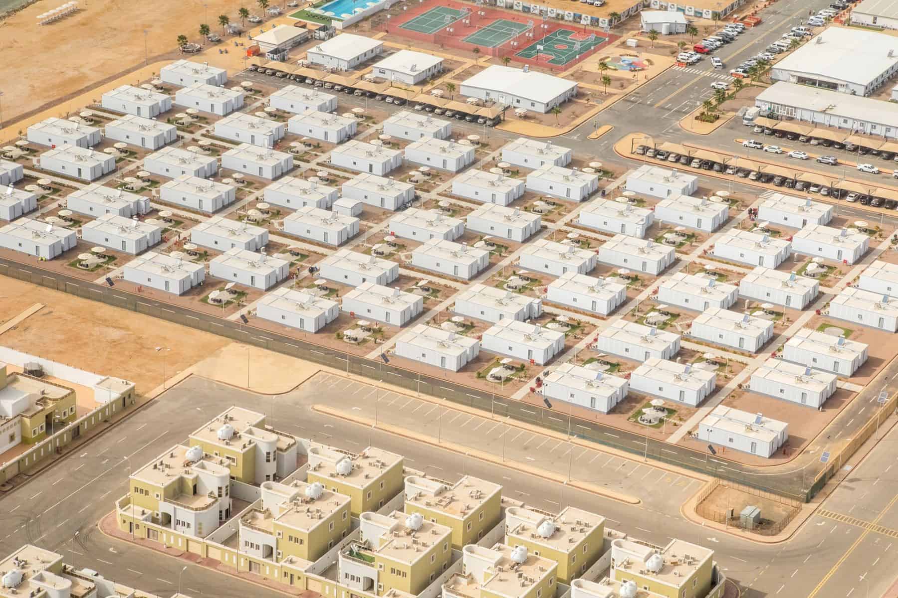 وذلك فضلا عن امتيازات وخدمات عالية المستوى، حيث يعيشون ـ بحسب بلومبيرغ ـ في معسكر كبير بموقع المدينة المنتظرة مع عائلاتهم، وتتولى العمالة المهاجرة خدمتهم، بدء من تحضير الطعام وحتى غسيل الملابس.