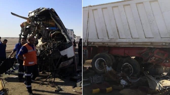 مقتل وإصابة نحو 55 شخصا في حادث سير عقب اصطدام حافلة وشاحنة على الطريق الصحراوي بمركز ملوي في #المنيا بمصر. pic.twitter.com/KQjTqHTok8