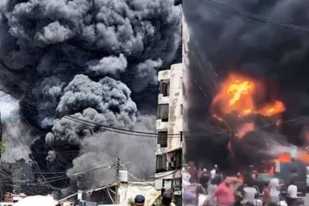شاهد| اندلاع حريق هائل بمستودع وقود إثر انفجار مولد كهربي في الضاحية الجنوبية بـ #بيروت.. والدفاع المدني يواصل محاولة إخماده#لبنان #العربية pic.twitter.com/qsBiDAWuQQ