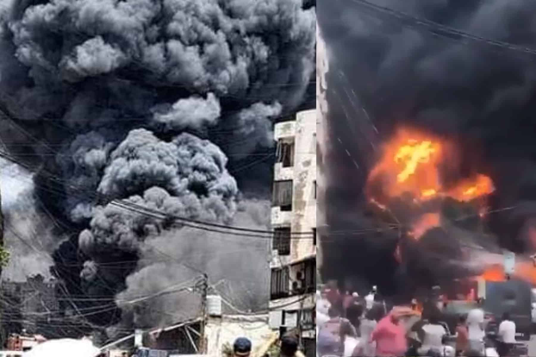 حريق هائل في الضاحية الجنوبية بـ #بيروت عقب انفجار خزانات وقود أحد مولدات الكهرباء#لبنان pic.twitter.com/yY71BF3Q8c