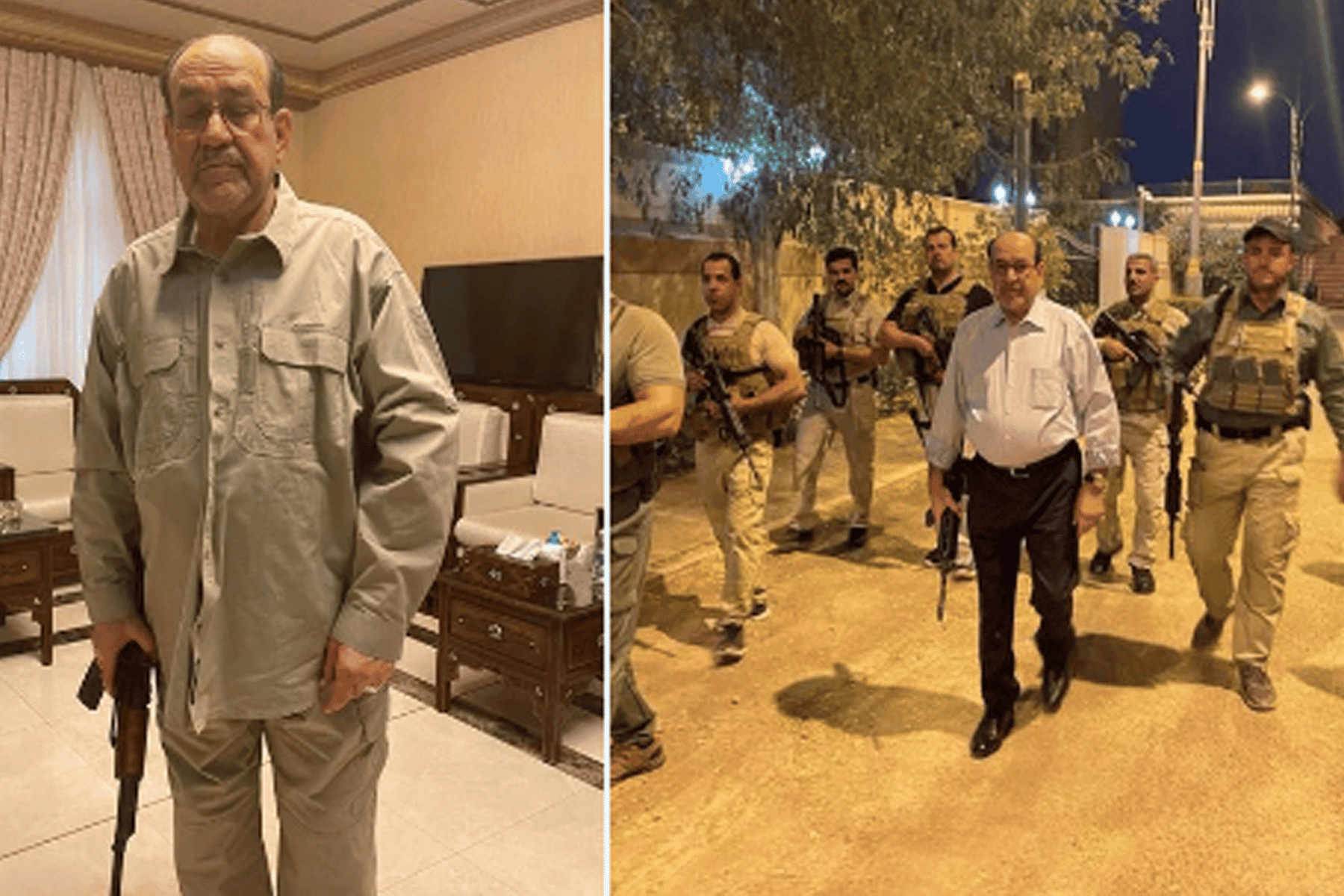 الصور المتداول التي تداولها الناشطون ورصدتها “وطن”، تظهر رئيس “ائتلاف دولة القانون”، نوري المالكي، حاملاً سلاحه وسط مجموعة من المسلحين داخل المنطقة الخضراء في بغداد.