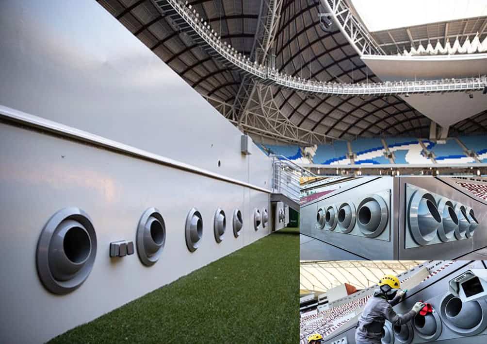 كما ويوضح التقرير المتلفز، بأن نظام التبريد يتكون من أمرين، حيث تتمثل التقنية الأولى في تنظيف الهواء داخل الملعب. بينما تقوم الآخرى على التبريد، ويكون ذلك من خلال دفع الهواء النقي والمبرد لداخل الملاعب المستضيفة للمونديال وإخراج الهواء الساخن.