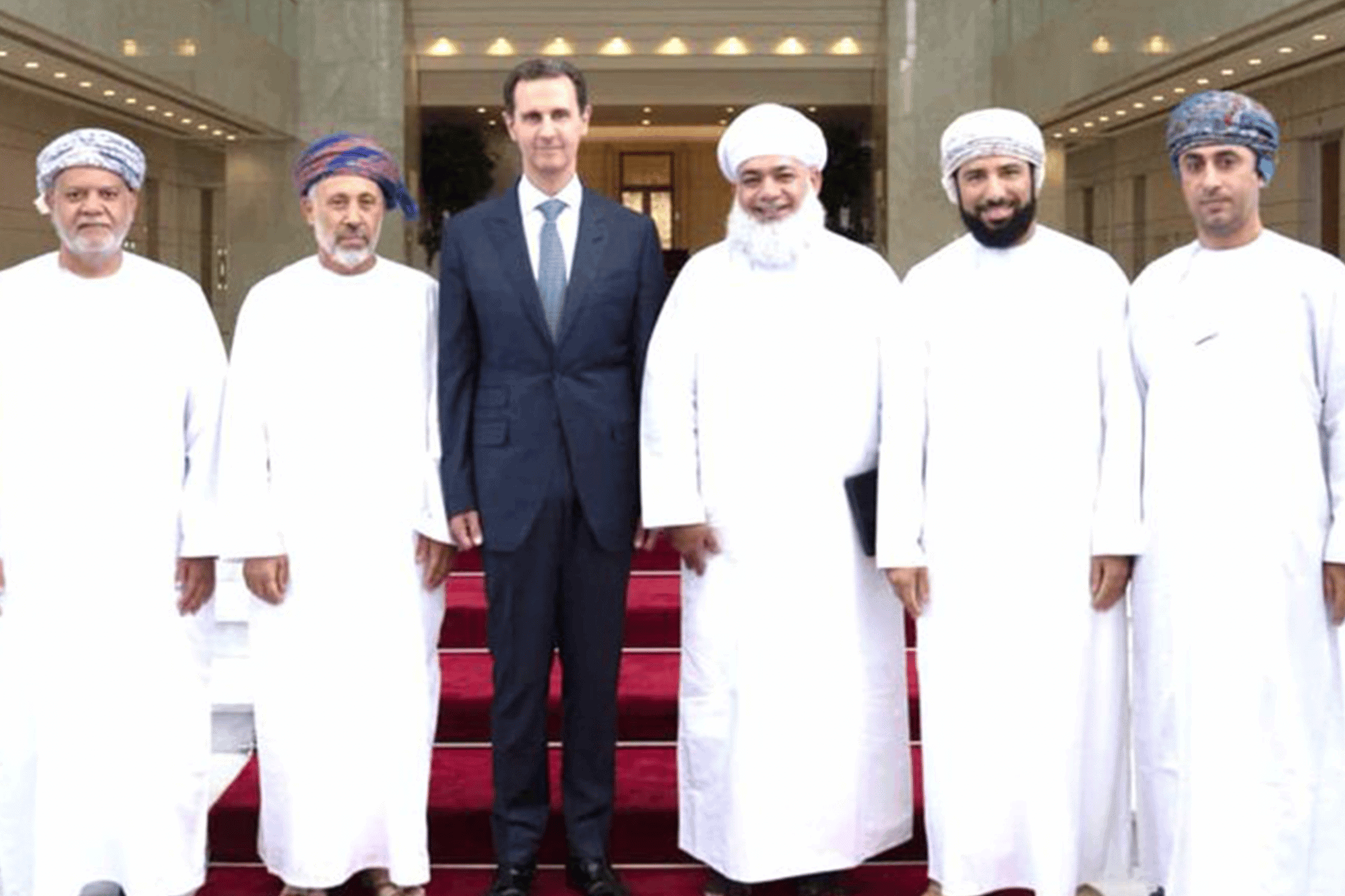 وانتشرت صورة كذلك للوفد العُماني المشارك في دمشق مع بشار الأسد.