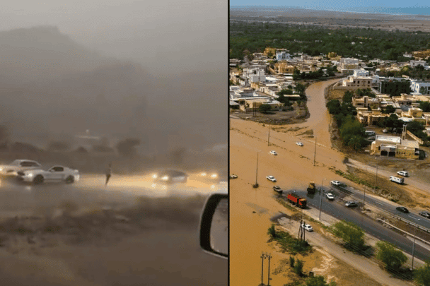 وأظهرت مقاطع فيديو متداولة في عُمان، مشاهد مرعبة لجريان السيول التي تسببت بإغراق الطرق والسيارات ومحاصرة بعض المواطنين.