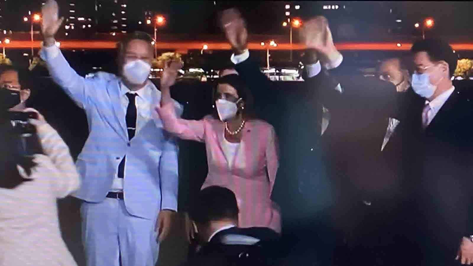 وبحسب موقع “marketwatch” فقد أظهر المقاطع المتداولة بيلوسي (82 عاما) المسافرة على متن طائرة عسكرية أمريكية، وهي تصل إلى مطار سونغشان في تايبيه، وكان في استقبالها وزير الخارجية التايواني جوزيف وو.