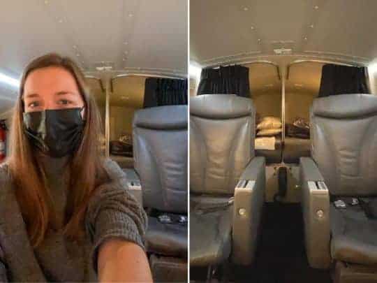وقالت مونيكا في هذا السياق “داخل حجرة النوم، رأيت مجموعتين من البطانيات والوسائد، والتي بدت مشابهة لتلك التي تلقيتها في مقعدي في درجة رجال الأعمال. “