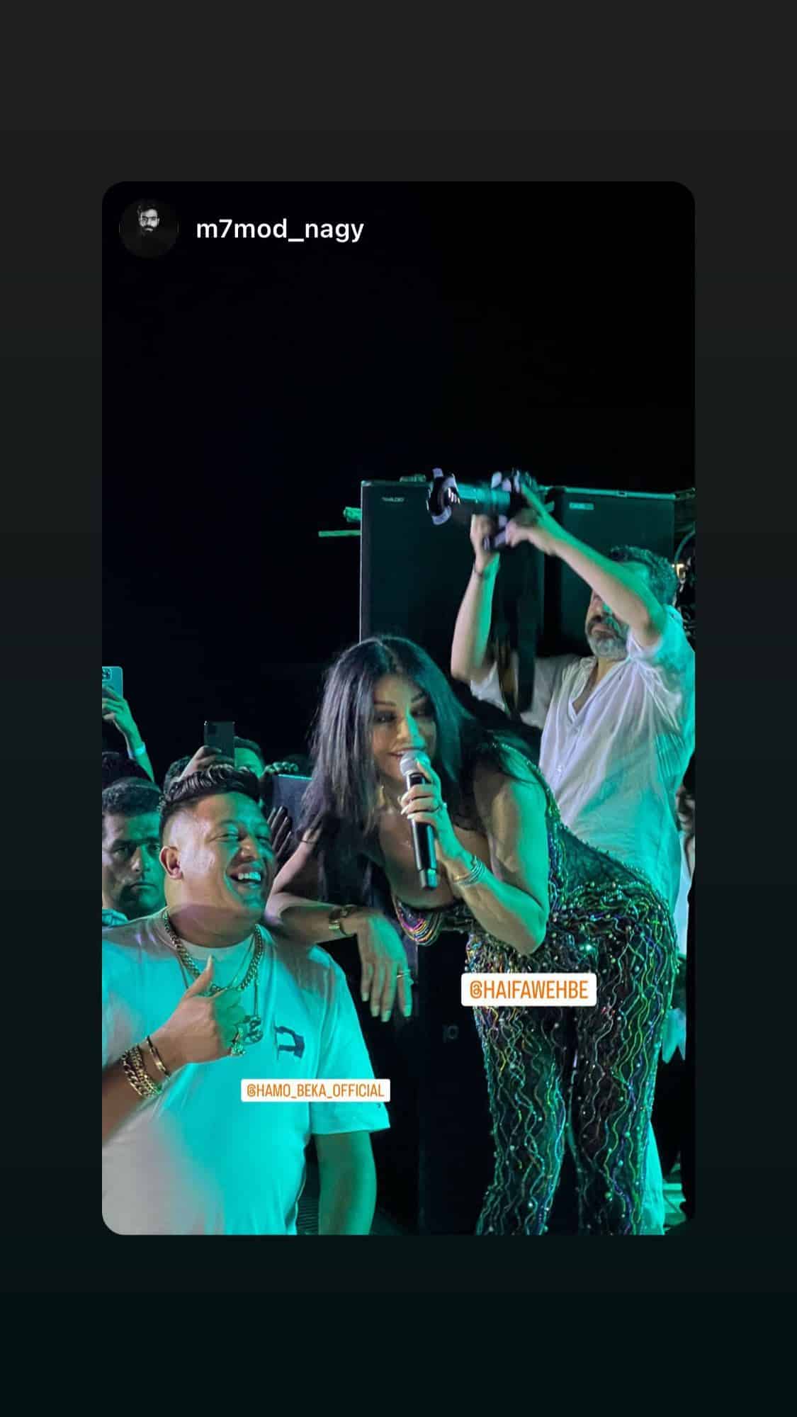 ونشر حمو بيكا فيديوهات عبر خاصية “الستوري” على حسابه في “انستجرام”، أظهر تقديم هيفاء أغنية “حياة قلبي” له وتتغزل به.