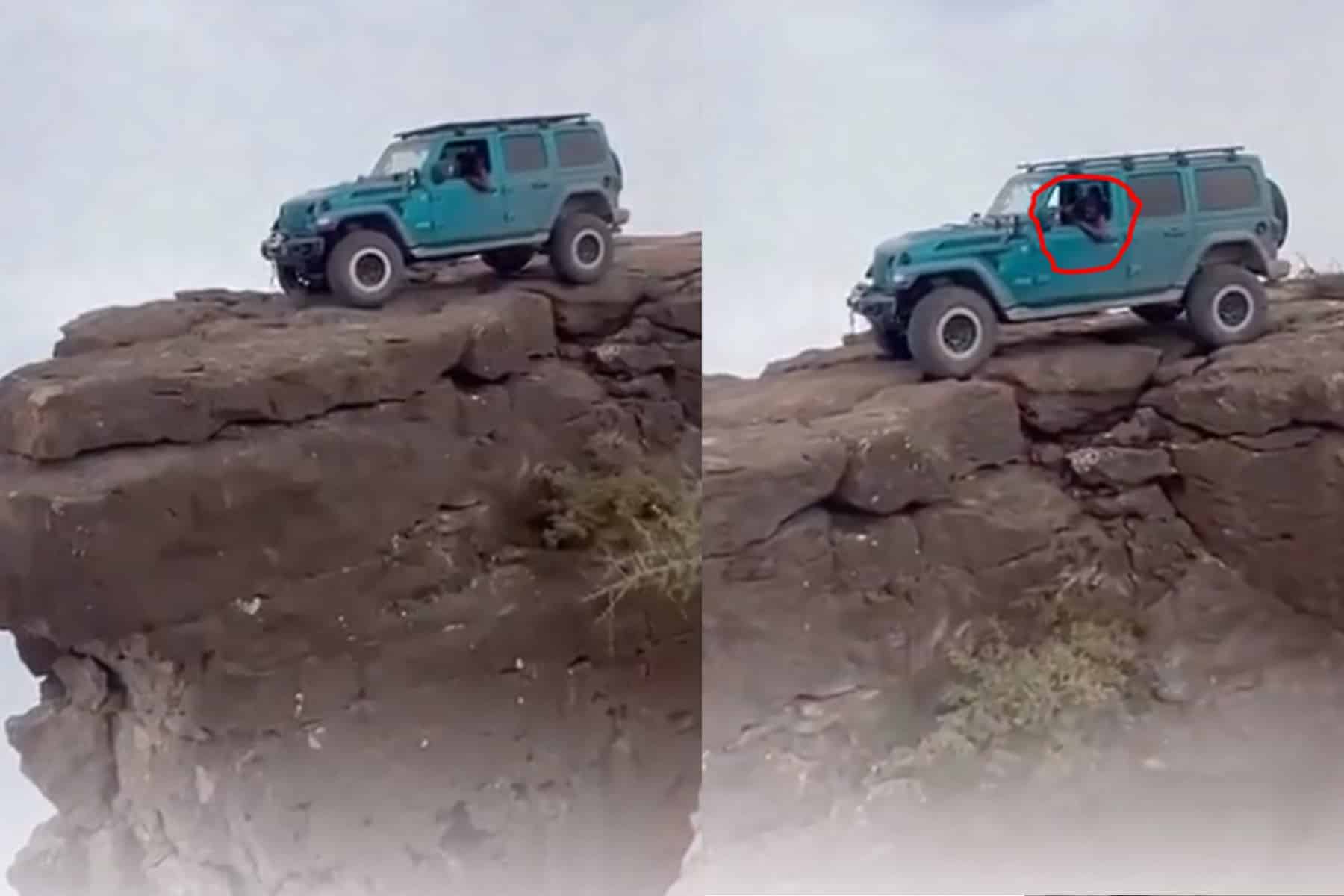 وأظهر المقطع الذي لاقى استنكارا واسعا ووصف صاحبه بـ”المستهتر”، سيارة “ملك الوحوش” وهي تجتاز حافة ضيقة على قمة شاهقة بجبل سمحان في ظفار، ليقف عندها.