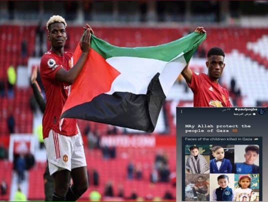 وقال بول بوغبا بكلمات قليلة تعبراً عن تضامنه ودعمه للقضية الفلسطينية، قائلاً: ” حفظ الله أهل غزة”، كما وأرفق رمز ليدين مرفوعة إلى السماء.