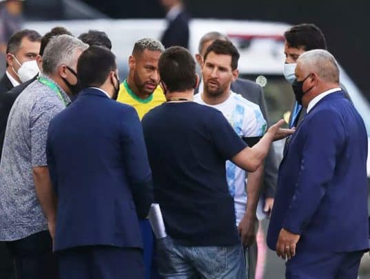 كما وشهدت المباراة آنذاك، دخول ممثلون من وزارة الصحة البرازيلية داخل ملعب المباراة، من أجل إخراج عدد من لاعبي منتخب الأرجنتين الضيف، بسبب مخالفتهم للشروط التي تفرضها البلاد للوقاية من وباء فيروس كورونا.