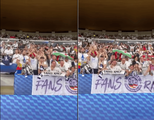 وأظهر مقطع فيديو أحد المشجعين في الصف الخلفي من المنصة وهو يرفع علم الثورة السورية.