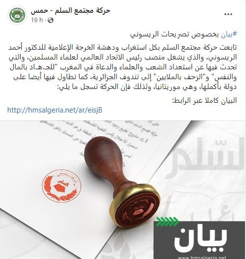 حركة مجتمع السلم الجزائرية ترد على تصريحات “الريسوني”