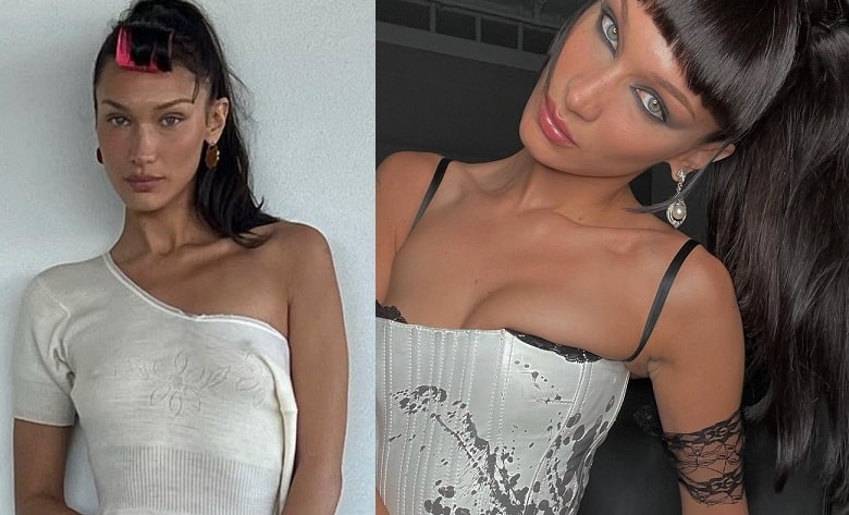 بيلا حديد عارية وتغطي صدرها بيديها ضمن عروض خريف 2022!
