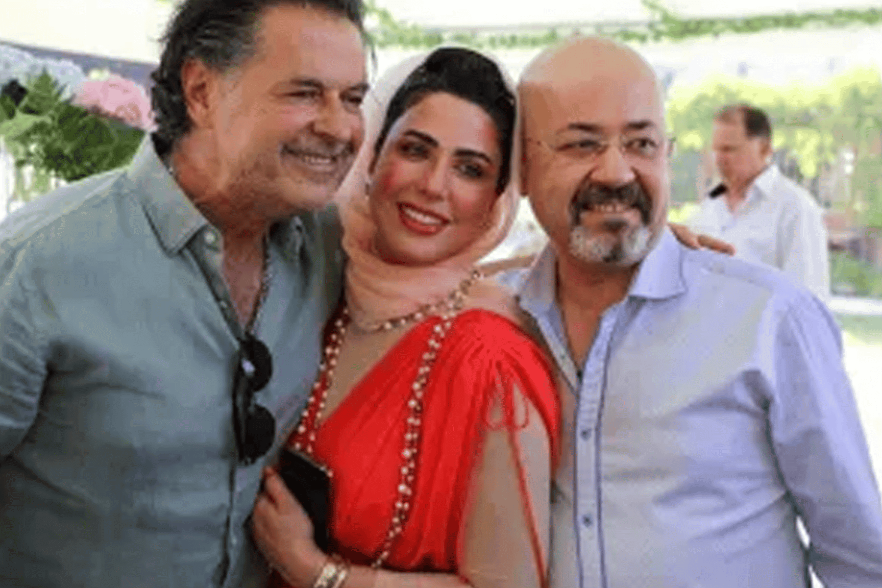 وكان راغب علامة يحتضن زوجة السفير العراقي بوضوح بجانب زوجها.