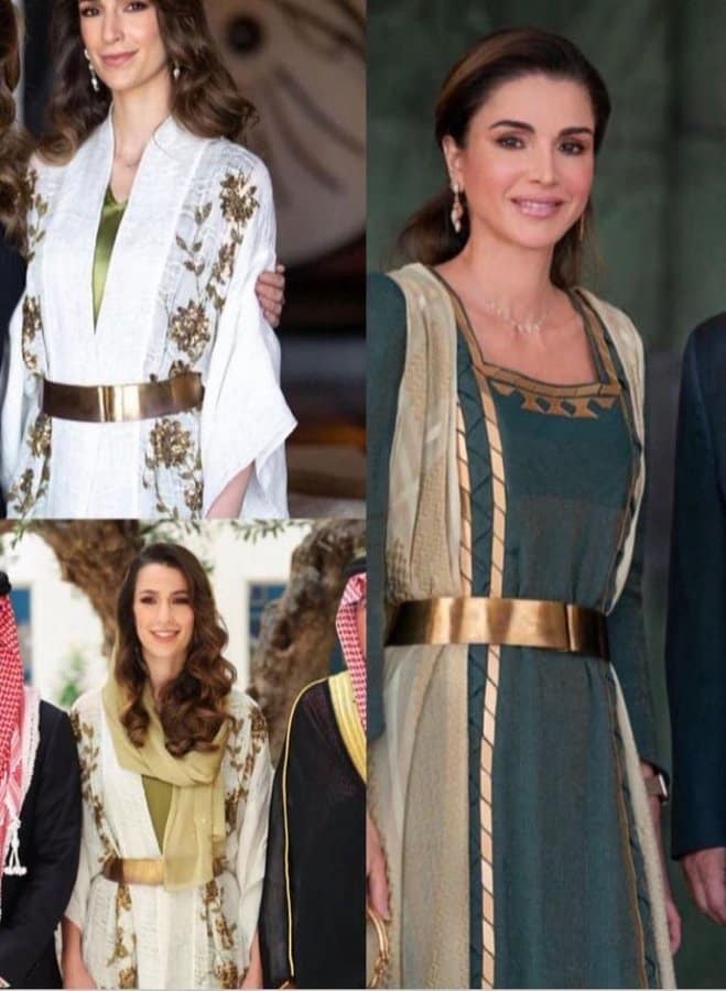 كما أعطت الملكة رانيا، خطيبة نجلها، الحزام الذي ارتدته يوم إعلان الخطوبة كما يظهر في الصورة التي نشرها حساب “CoutureAndRoyals“.