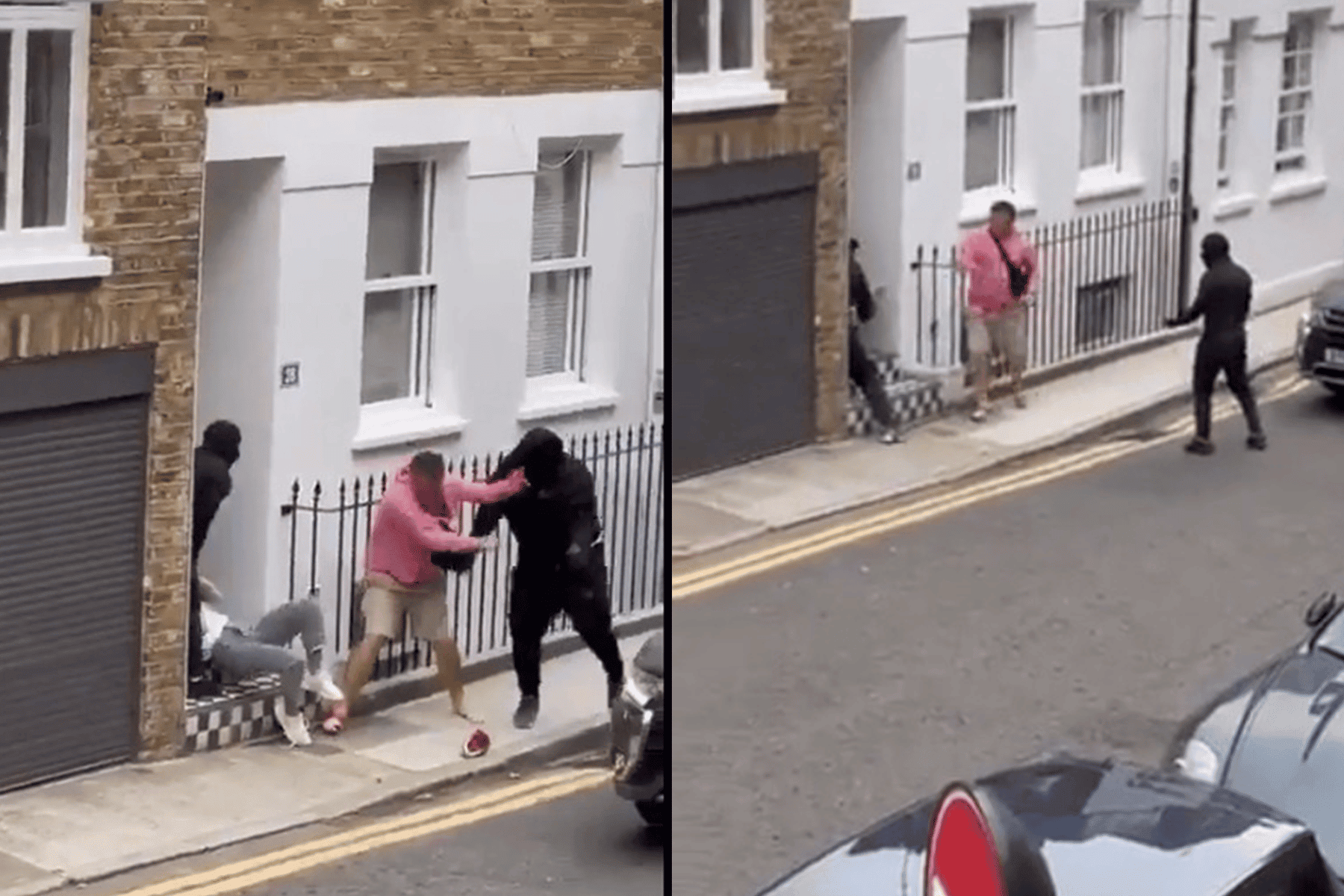 ويظهر اللص في مقطع الفيديو وهو يقود دراجته النارية بالقرب من سيارة البصمان في الشارع القريب من حديقة الهايد بارك في Mayfair يوم الأحد، قبل أن يجبرهما الازدحام المروري على التوقف للحظات بجوار بعضهما البعض.