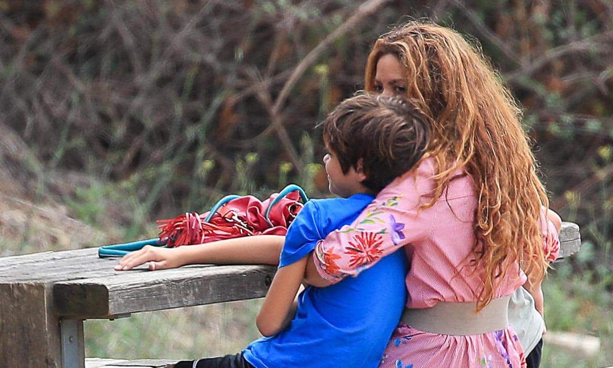 وبدت ملامح الحزن واضحة على وجه شاكيرا، وهي تعانق ولديها. مرتديةً فستانًا وردياً وثوباً مزيناً بالورود. بينما كان أطفالها يرتدون ملابس رياضية.