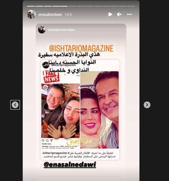 وتقول إيناس بالفيديو المنسوب لميسم الربيعي: “شوفو مين ويانا اليوم”. ليرد الفنان اللبناني: “أنا”. لتبدأ إيناس وصلة غزل قائلة: “كامل الجمال، كامل الأناقة، كامل الحضور، سوبر ستار بمعنى الكلمة. حياتي نورت”.