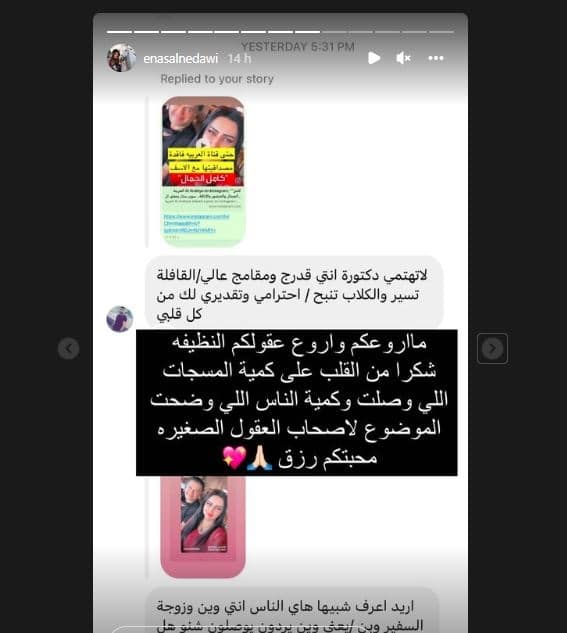ولكن، تبين أن السيدة الظاهرة في الفيديو ليست ميسم الربيعي، زوجة السفير بل سيّدة عراقيّة تدعى إيناس النداوي.