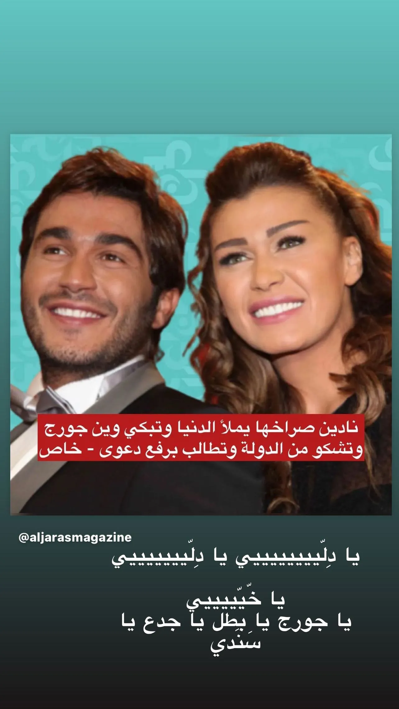 فنشرت نادين فيديو لجورج الراسي وهو يغني لوالدته على البحر “ست الحبايب”. وعقّبت: “كسرتلي ضهري يا سندي. انكسر قلب امي”.