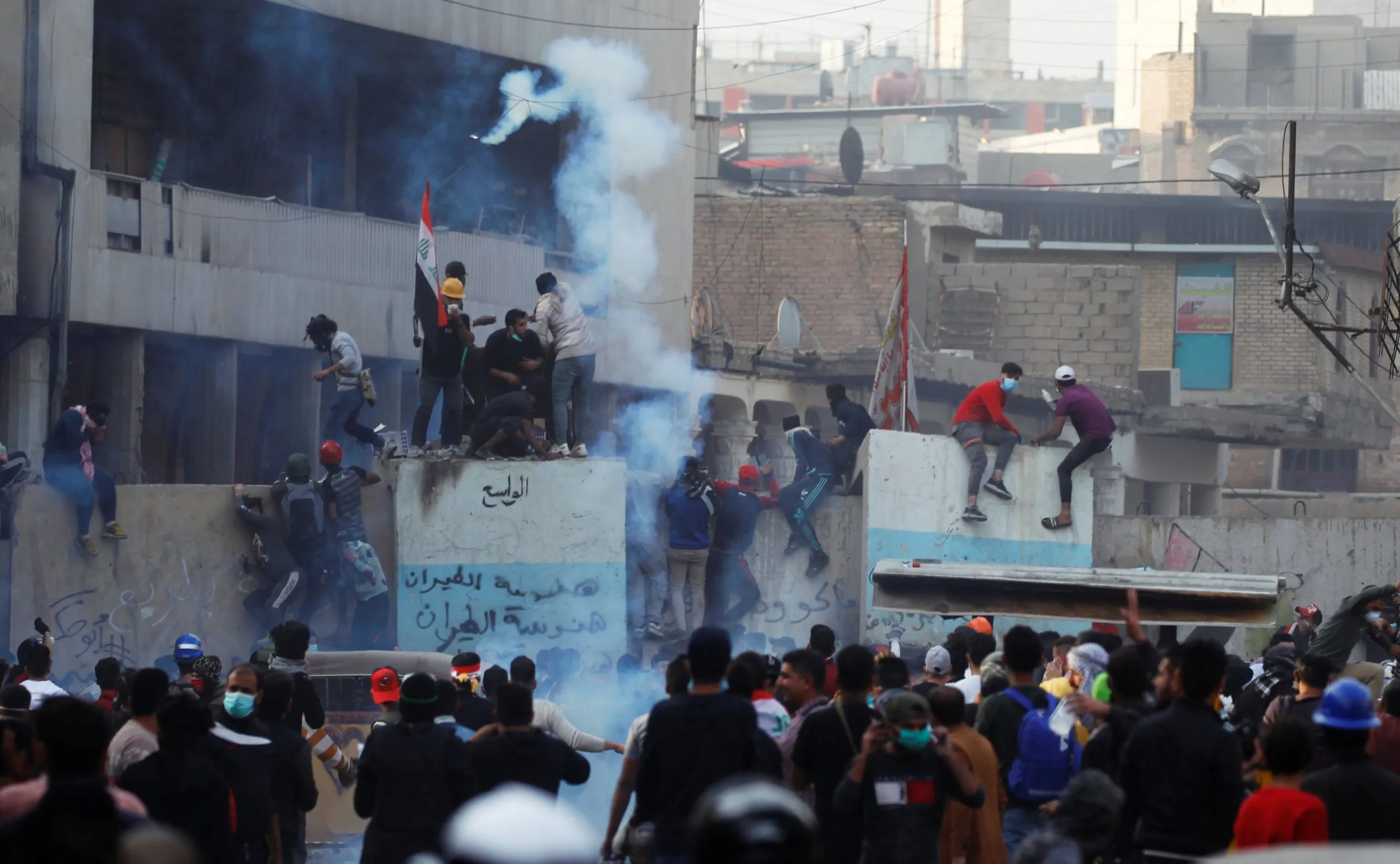 المواجهات بالقرب من مبنى مجلس النواب العراقي وسط بغداد. pic.twitter.com/NGMhf876W1