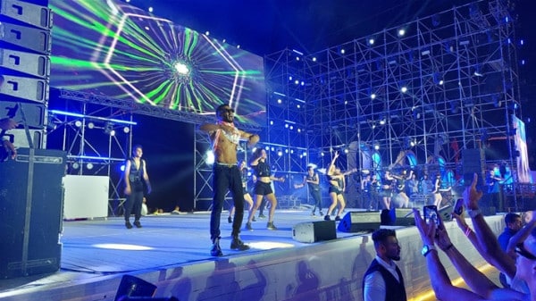 ففي قرار واضح، أنه لن يتراجع عن عادته، ظهر محمد رمضان في حفله الأخير بمدينة العلمين الجديدة، بدون تيشرت. واكتفى بوضع شماغ باللونين الأحمر والأبيض.
