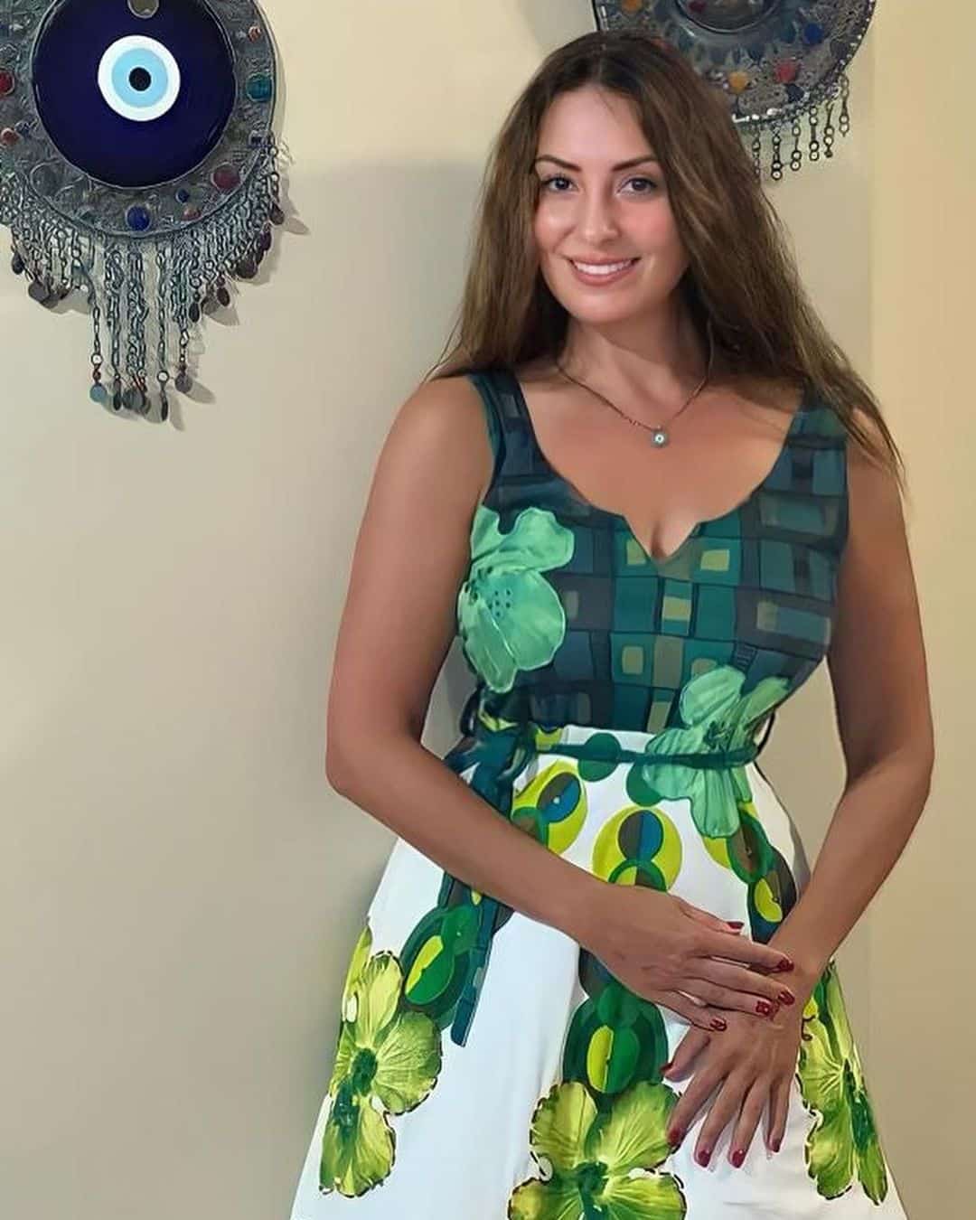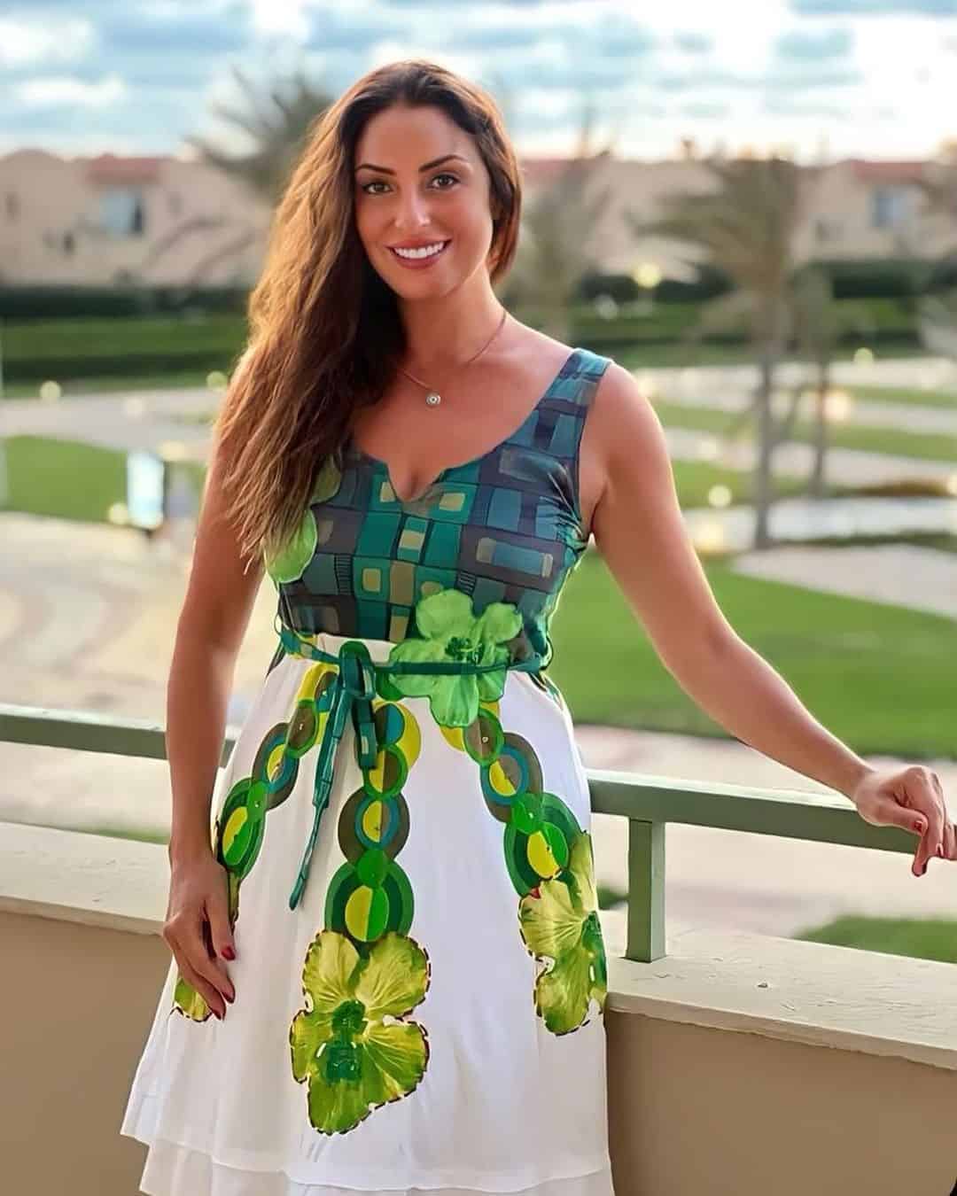 وظهرت نرمين الفقي في الصور التي نشرتها عبر حسابها على “انستقرام”، بفستان صيفي قصير بلا أكمام. متعدد الألوان، يغلب عليه الأخضر.