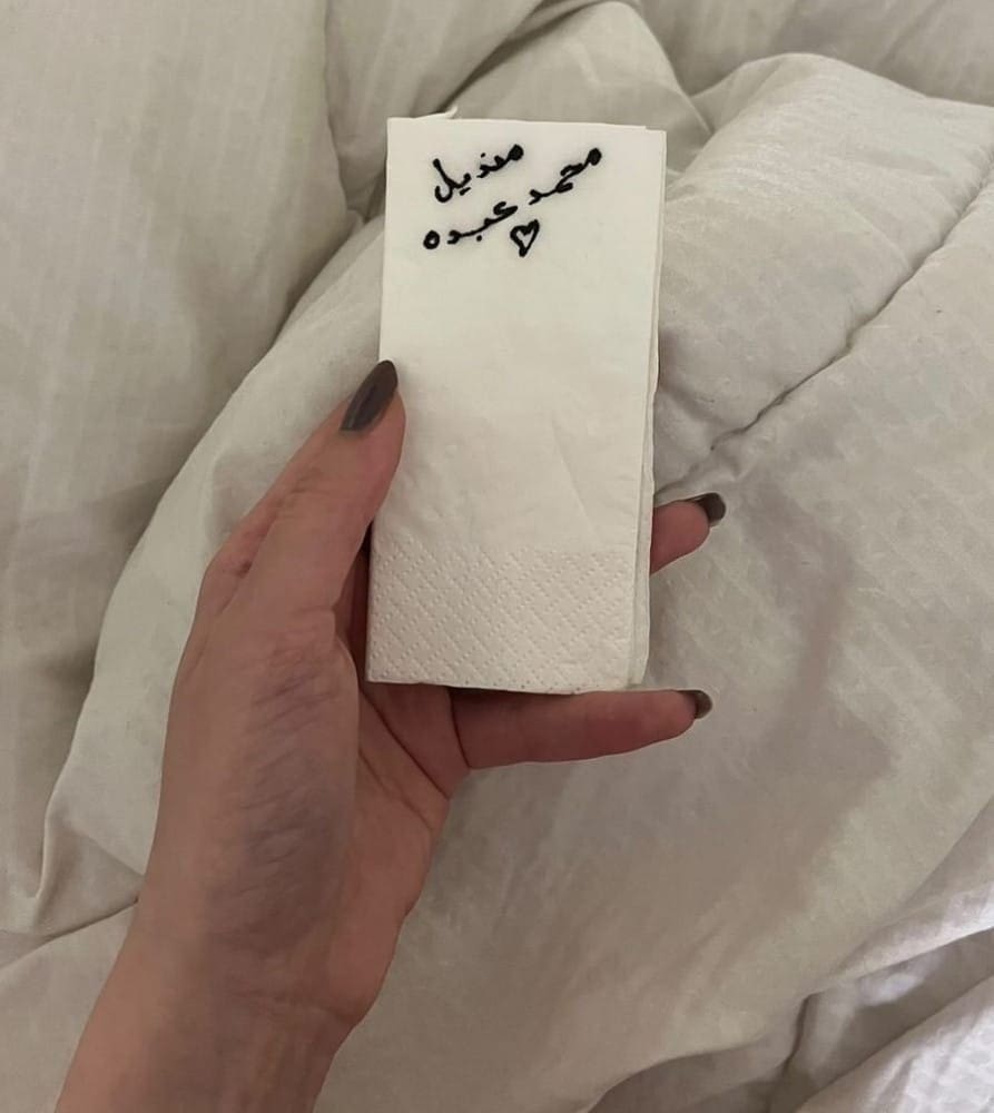 ووثّق الناشط بالصور، لحظةَ تسلّل فتاتين من المتجر، إلى المسرح بعد انتهاء محمد عبده من حفلته، وحصولهم على المنديل وإخفائه.
