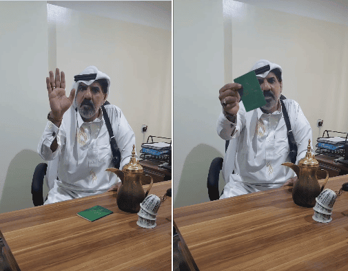 وأظهر الفيديو، الشمري وهم ممسك بجواز سفره، قائلاً إنه لا يتقبل حمل هذا الجواز، ثم ألقاه أرضاً ودهسه بقدمه.