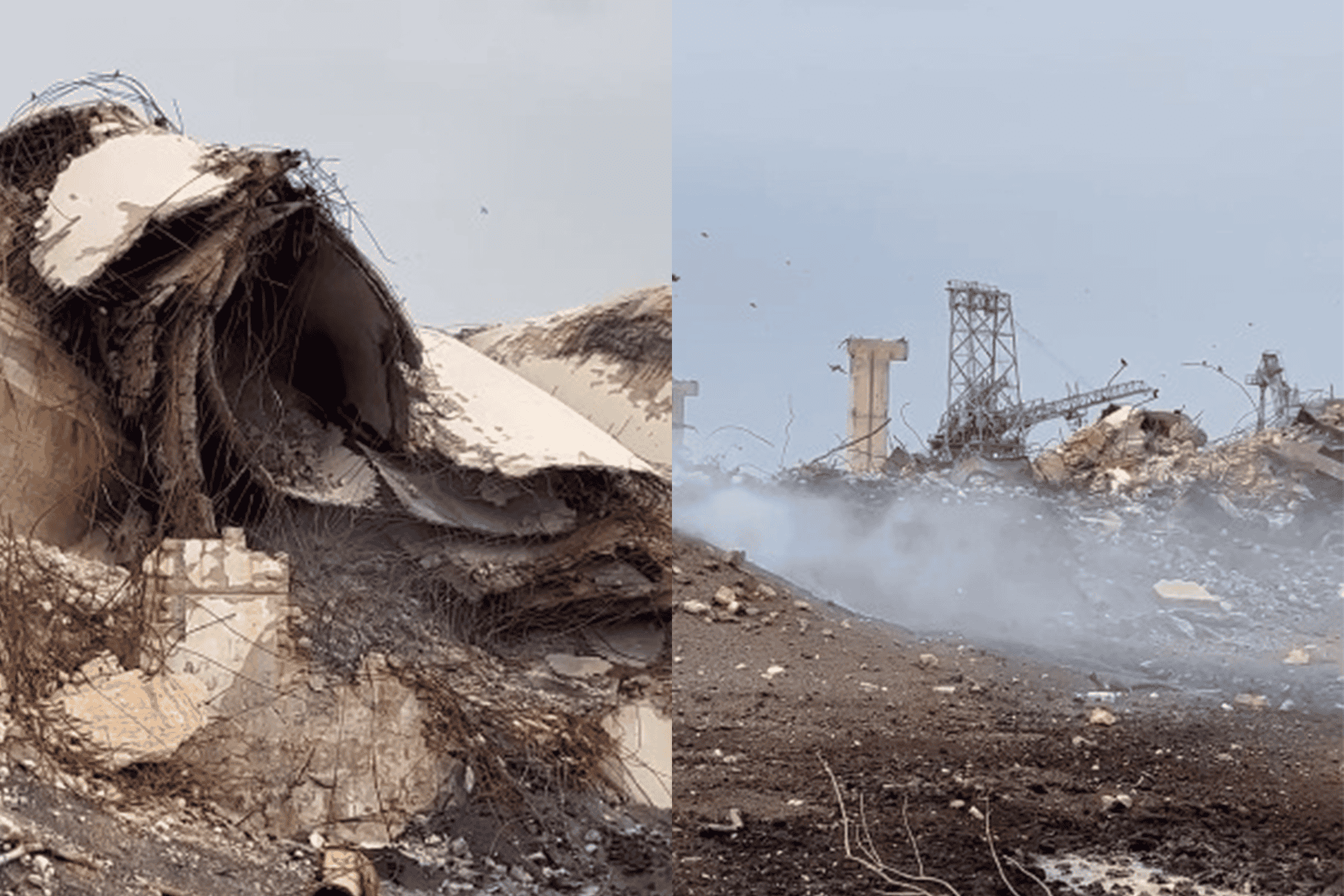 وتهاوت أجزاء من إهراءات القمح في مرفأ بيروت في 30 يوليو الماضي. وذلك على أثر الانحناء الذي تسبّبت به الحرائق المشتعلة منذ فترة، بسبب تخمّر كميات كبيرة من القمح والحبوب الموجودة داخل الصوامع وخارجها، وفور انهيار الجزء المتصدّع، غطّى غبار كثيف أجواء مرفأ بيروت.