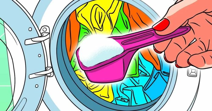 لاستعادة اللمعان لغسيل الملابس، ما عليك سوى إضافة ملعقة كبيرة من بيركربونات الصوديوم إلى دُرج منظف الغسالة بالإضافة إلى منظف بيئي وقابل للتحلل.