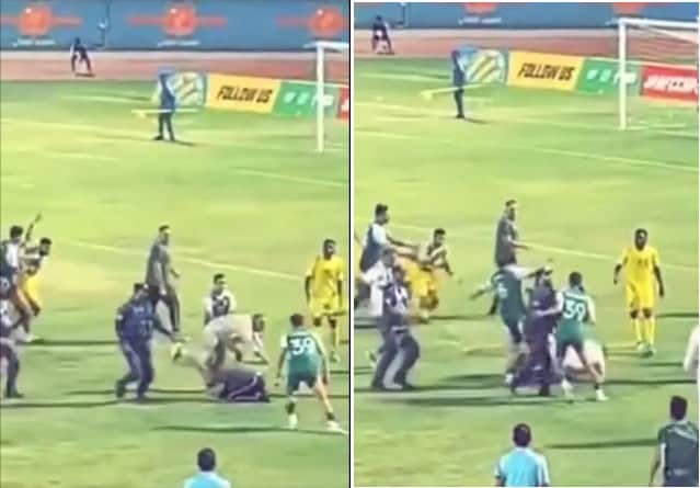 وأظهر مقطع فيديو لحظةَ اعتداء “مندني” على طبيب فريق نادي “السيب” العماني، حيث توجّه بقوة نحو الطبيب وركلَه في رأسه أثناء سقوطه على الأرض.