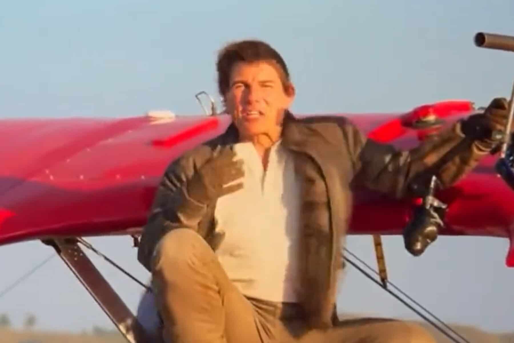 وقد ظهر توم كروز وهو يقف دون وجود شيء ما يربطه على ما يبدو، مع إمساكه بالطائرة فقط بجانب طائرة أخرى، قبل انعطاف الطائرتين بشكل مفاجئ إلى اليسار مع الهبوط إلى الأسفل.