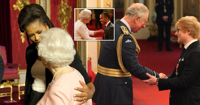 أثناء حصوله على جائزة MBE في قصر باكنغهام، في عام 2017، اخترق المغني إد شيران قواعد البروتوكول الملكي، عندما لمس ذراع الملك تشارلز الثالث بدلاً من يده، وهو أمر غير مقبول.