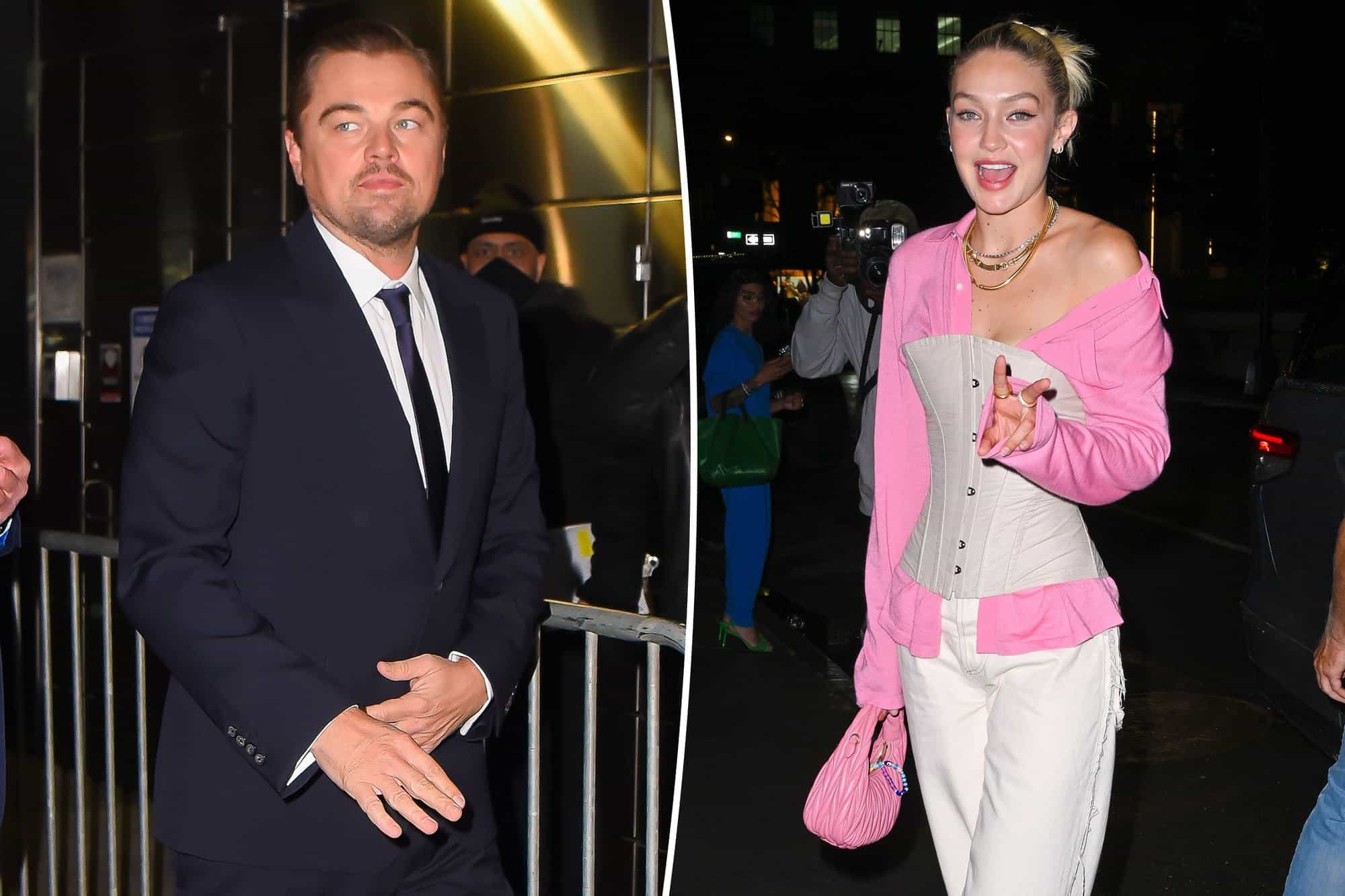 وبدا كل من ليوناردو دي كابريو، وجيجي حديد، يميلان نحو بعضهما، ويحاولان الدردشة رغم الحفلة الصاخبة.