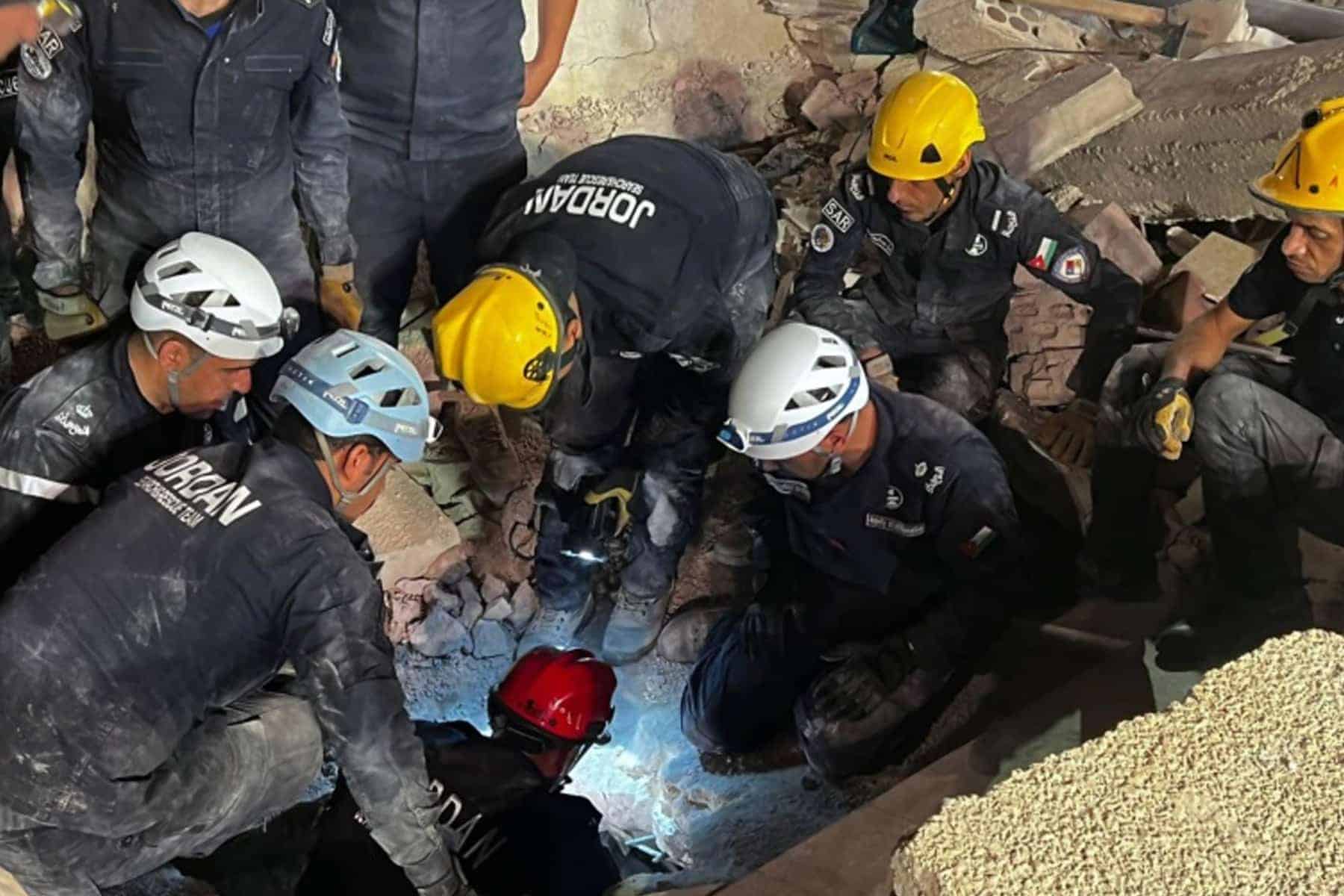 وأظهر مقطع آخر بثته وسائل إعلام أردنية، لحظة انتشال عناصر الدفاع المدني في الأردن لرضيعة تبلغ من العمر 5 أشهر، والتي نجت بمعجزة إلهية وبقيت حية تحت الأنقاض.