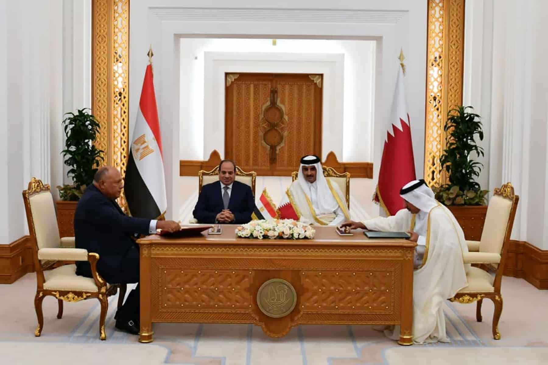 مؤكّداً على أن زيارته للدوحة، “تعبير عن إرادة مشتركة لطي صفحة الماضي بين مصر قطر”.