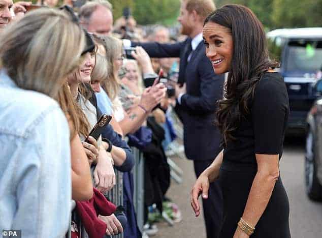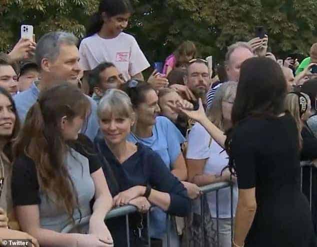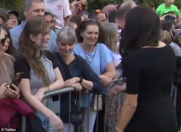 وظهرت ميغان ماركل بفيديو تمّت مشاركته على مواقع التواصل الاجتماعي، ونشرته صحيفة “ديلي ميل“، وهي تحاول مصافحة يد امرأة من بين الحشود.
