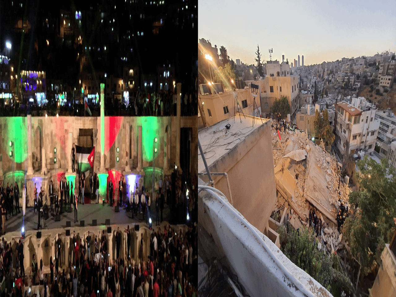 وطن– ضجت مواقع التواصل الاجتماعي في الأردن بموجة غضب عارمة، على إثر إقامة حفل غنائي صاخب في المدرج الروماني لفرقة “اتوستراد” المحلية، وذلك على بعد مسافة قريبة جداً من المكان، الذي كان يكافح فيه رجال الدفاع المدني في البحث عن ناجين في عمارة “اللويبدة”، التي سقطت قبل 4 أيام، حيث أدت الحادثة إلى مقتل 14 شخصاً.
