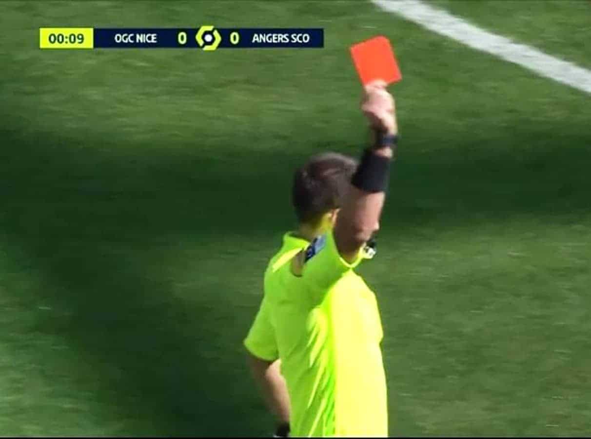 توديبو مدافع نيس يتحصل على بطاقة حمراء بعد 9⃣ ثواني فقط من بداية المباراة 😱