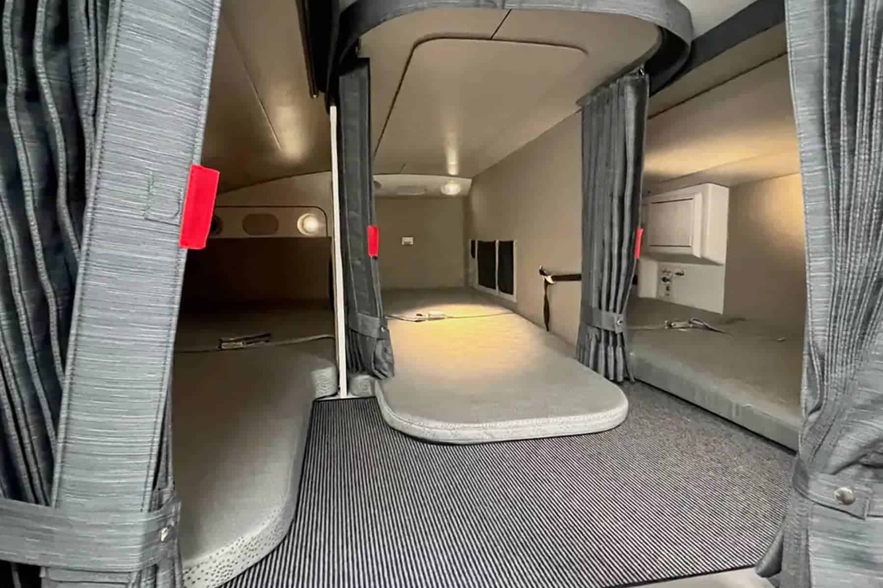 كانت هذه المساحة منفصلة عن الأسرّة الثمانية المنتشرة في جميع أنحاء المقصورة، والتي تضم ثلاثة أسرّة على اليسار: اثنين في الوسط، وثلاثة في الخلف.