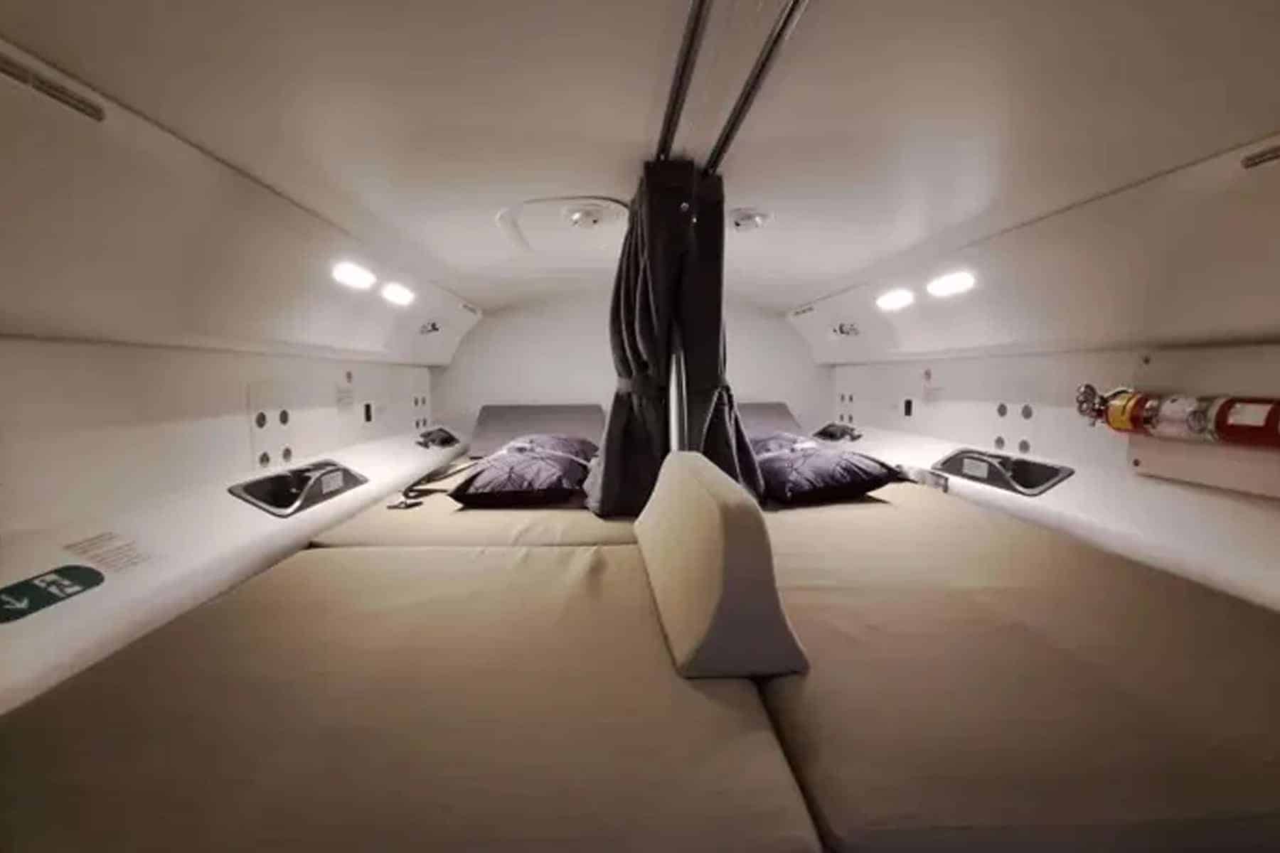 إلى ذلك، تحتوي العديد من الطائرات ذات الجسم العريض على مقصورة سرية منفصلة عن الركاب، حيث يمكن لأفراد الطاقم الاسترخاء فيها على انفراد.
