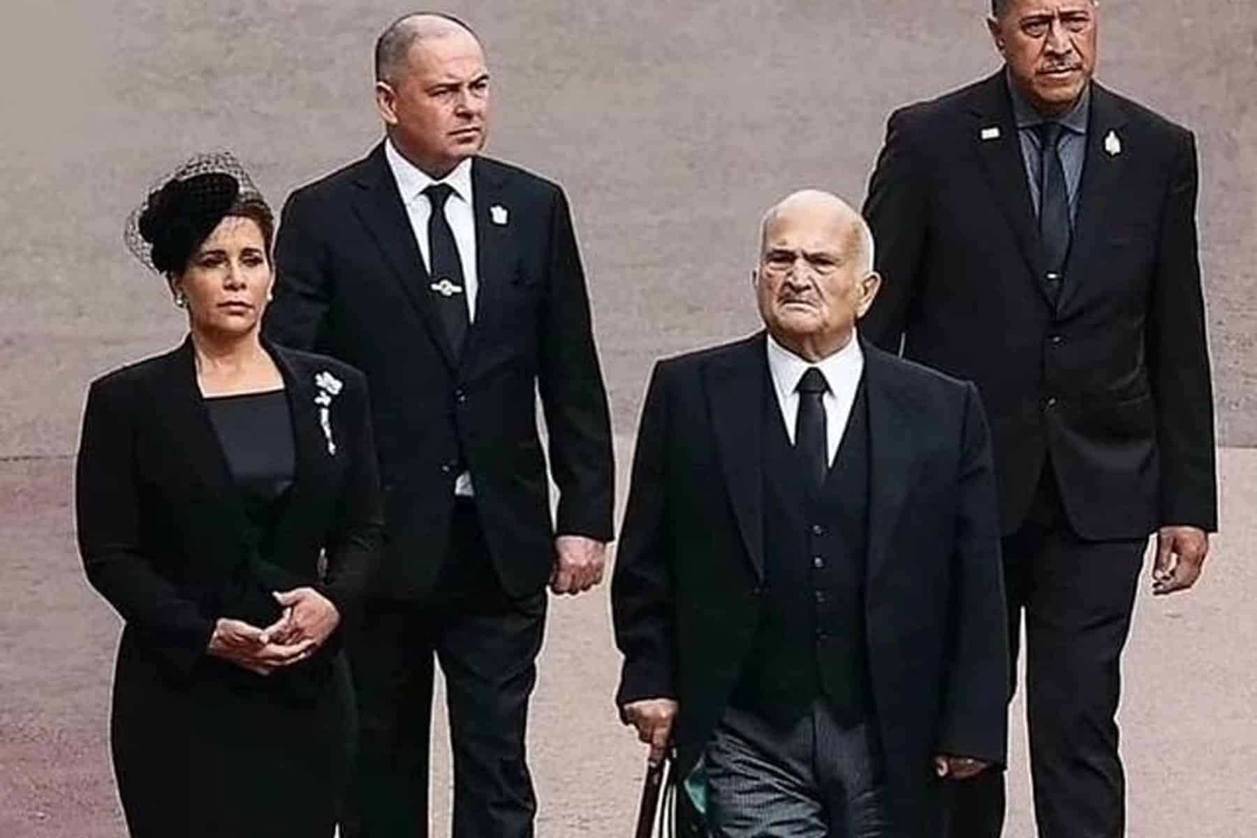 من هي المرأة التي ظهرت بجانب حاكم دبي في جنازة إليزابيث الثانية؟