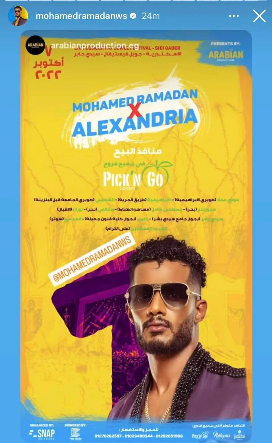 وطن– ردّ الفنان المصري محمد رمضان، على دعوات إلغاء حفلته في الإسكندرية، بالاستعانة بالرسائل التي وصلته من الجمهور.