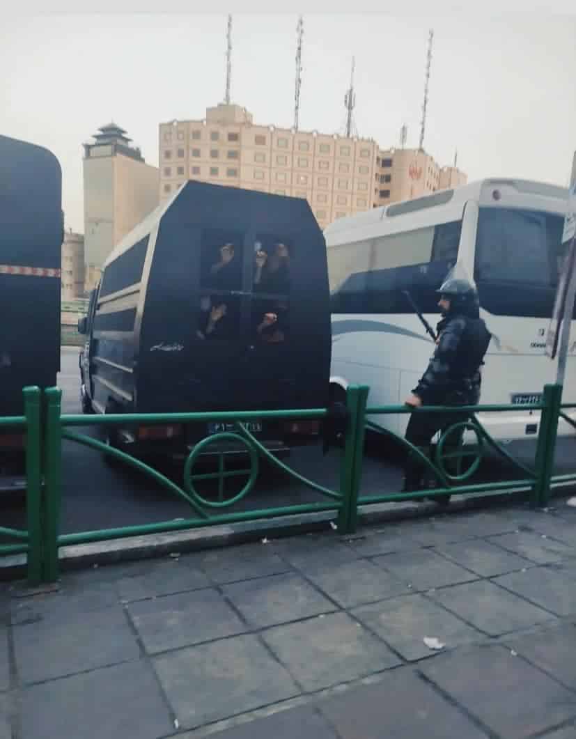 وبدا في أحد الصور المتداولة عدد من المعتقلات خلف شبك حديدي موصد لسيارة شرطة مخصصة للترحيلات.